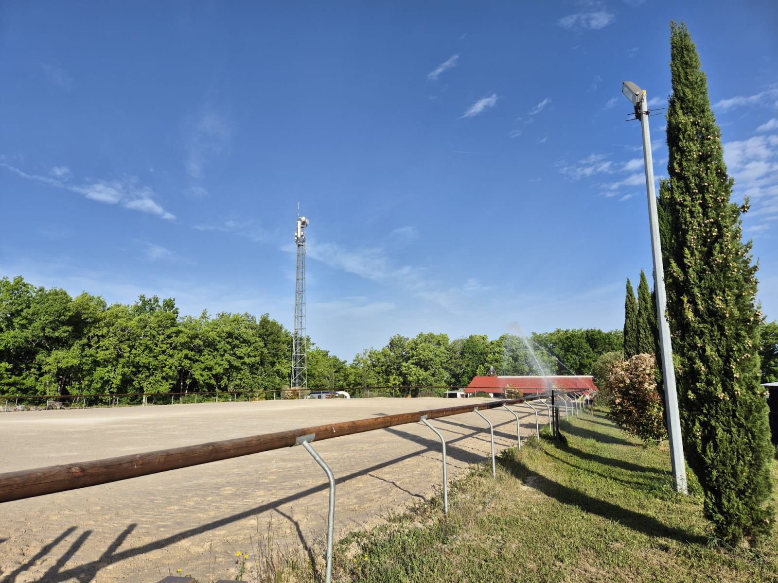 - D'une carrière 60*40M, bombée, sable Lastick, lices aux normes (2020), arrosage avec réserve d'eau de 30 m3