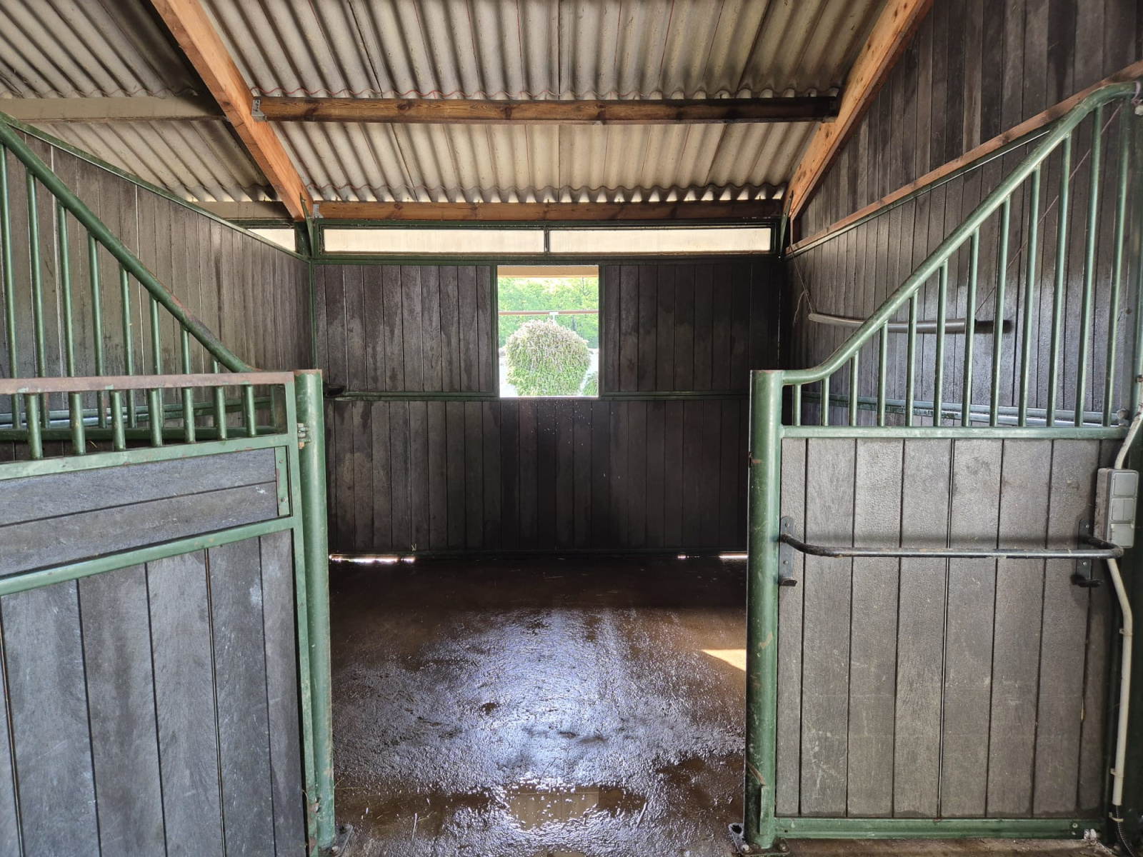 - D'un barn's de 12 boxes avec sellerie, douche, espace de pansage, ventilateurs, 4 boxes structure bois et 4 boxes structure résine. Soit 20 boxes .