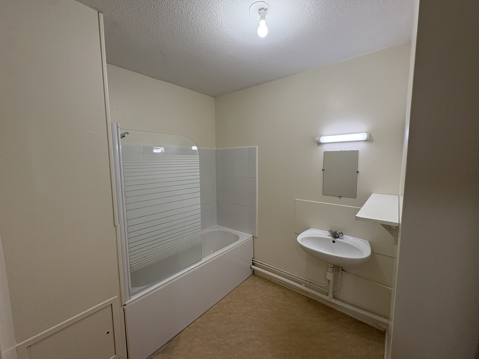 Appartement T2 de 55.23 m² avec du charme composé d'une entrée avec placard d'une pièce de vie séparée de la cuisine, d'une cuisine équipée, d'une chambre avec placard, d'une salle de bain rénovée et d'un wc séparé.