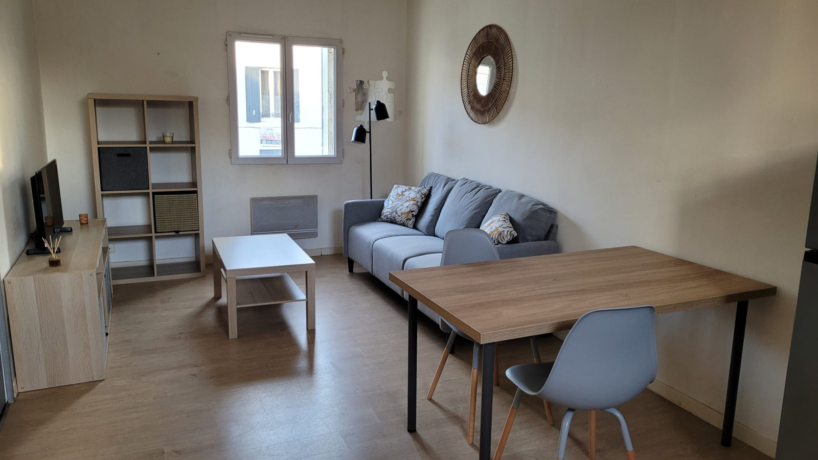 Un appartement T2 meublé situé au 1er étage composé d'une cuisine équipée ouverte sur un grand séjour lumineux, d'une grande chambre avec placard de rangement ainsi que d'une belle salle d'eau.