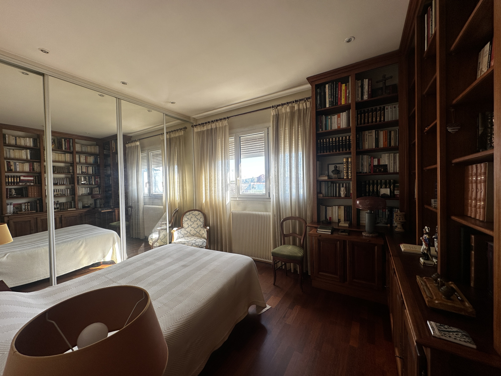 Côté nord, deux chambres avec grands placards intégrés dont l’une dispose d’une bibliothèque sur mesure.