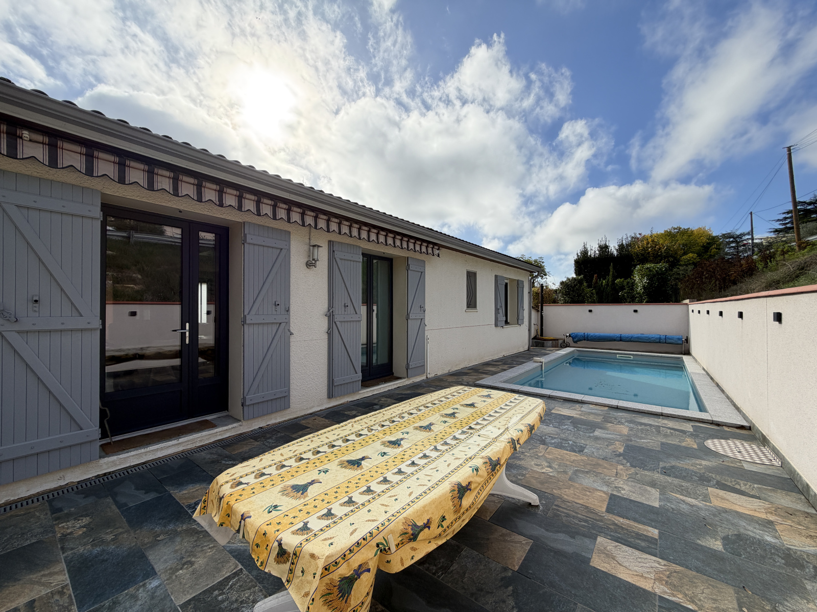L’extérieur dispose d’un espace piscine idéal pour les moments de détente.