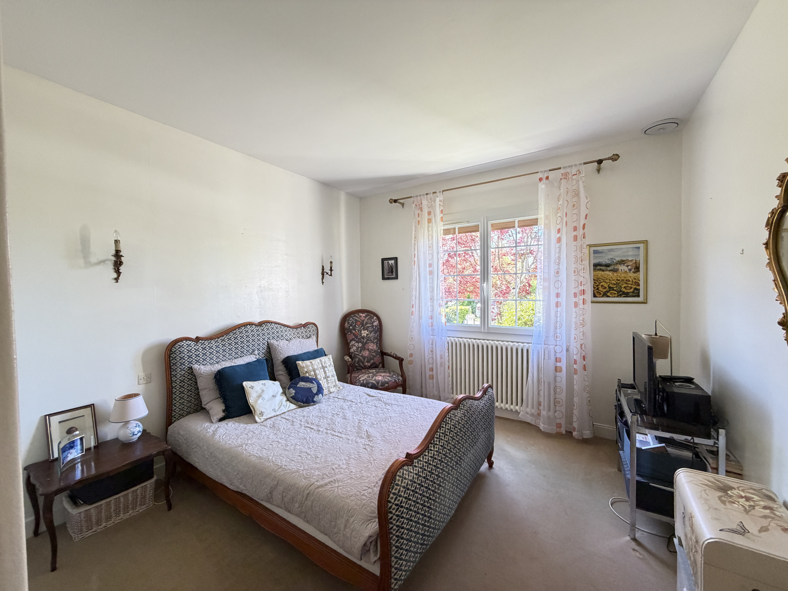 Une construction traditionnelle de caractère avec sa double génoise et sa rotonde élégante, cette maison offre un cachet rare. Implantée sur un magnifique terrain arboré de 810 m², parfaitement entretenu, elle garantit un cadre de vie agréable et serein.