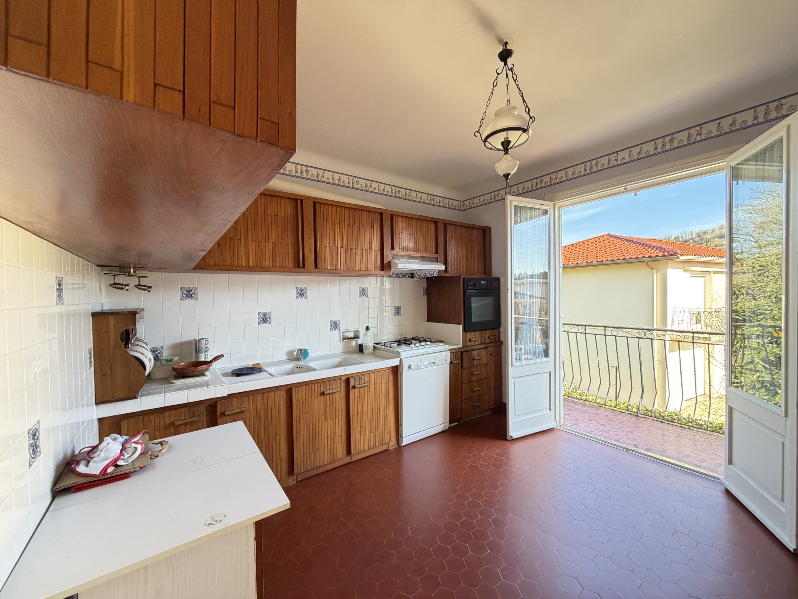 Étage : 3 chambres, salon lumineux avec balcon, cuisine, WC, salle d’eau.