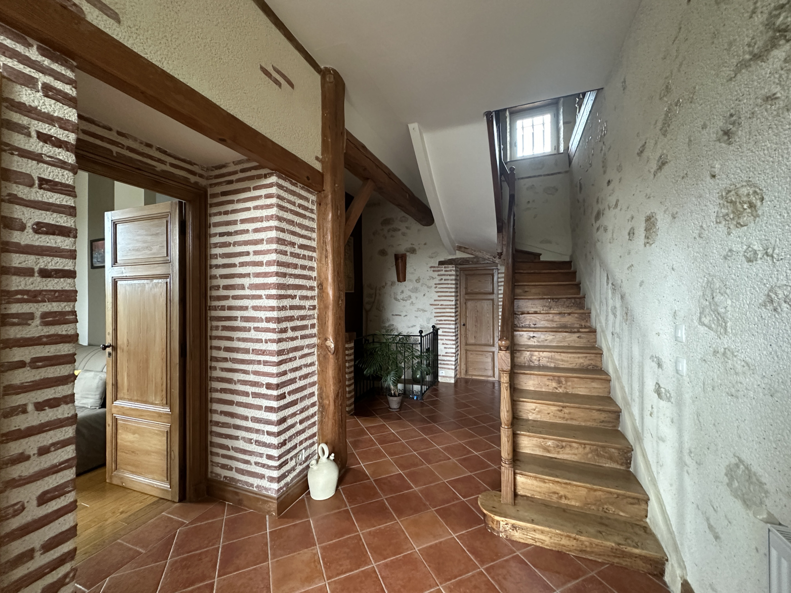 Rdc : belle entrée avec pierres apparentes