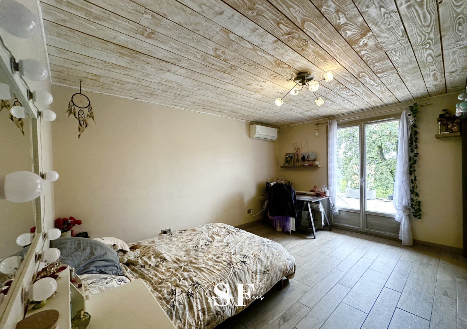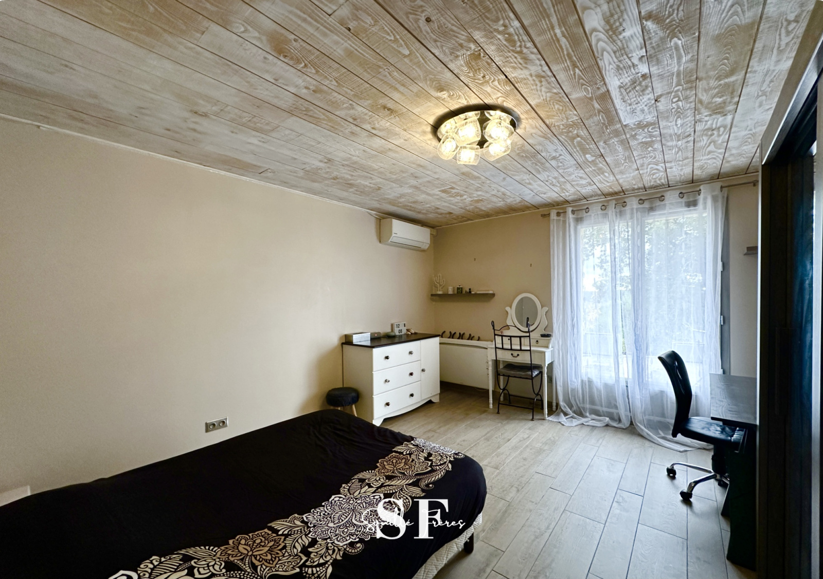 À l’étage, l’espace nuit se compose de trois chambres dont une suite parentale équipée avec dressing, salle de bains et douche. Toutes les chambres ouvrent sur une terrasse avec vue panoramique. Les deux autres chambres partagent une salle de bains moderne avec douche et WC indépendant. Une pièce mansardée complète ce niveau et peut aisément devenir salle TV ou salle de jeux.