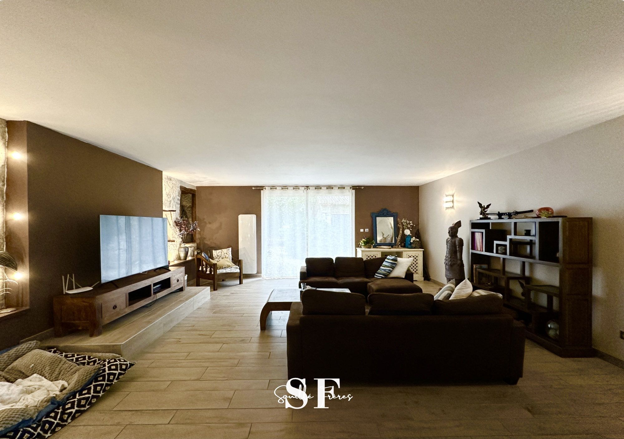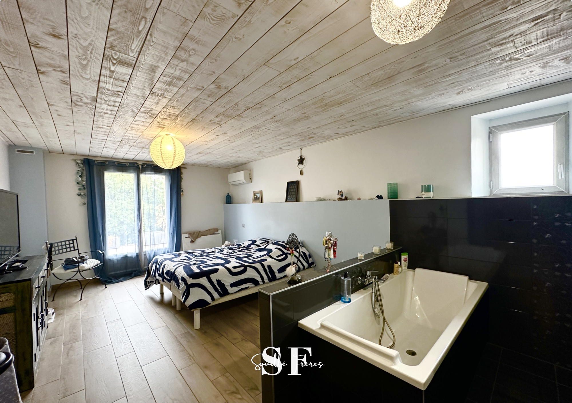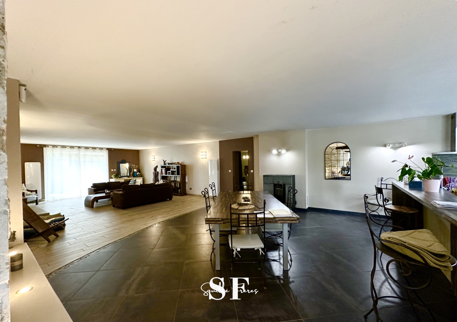 À l’extérieur, la propriété profite d’un espace piscine entièrement équipé : grande plage, vaste pool house avec douche, WC et local technique.