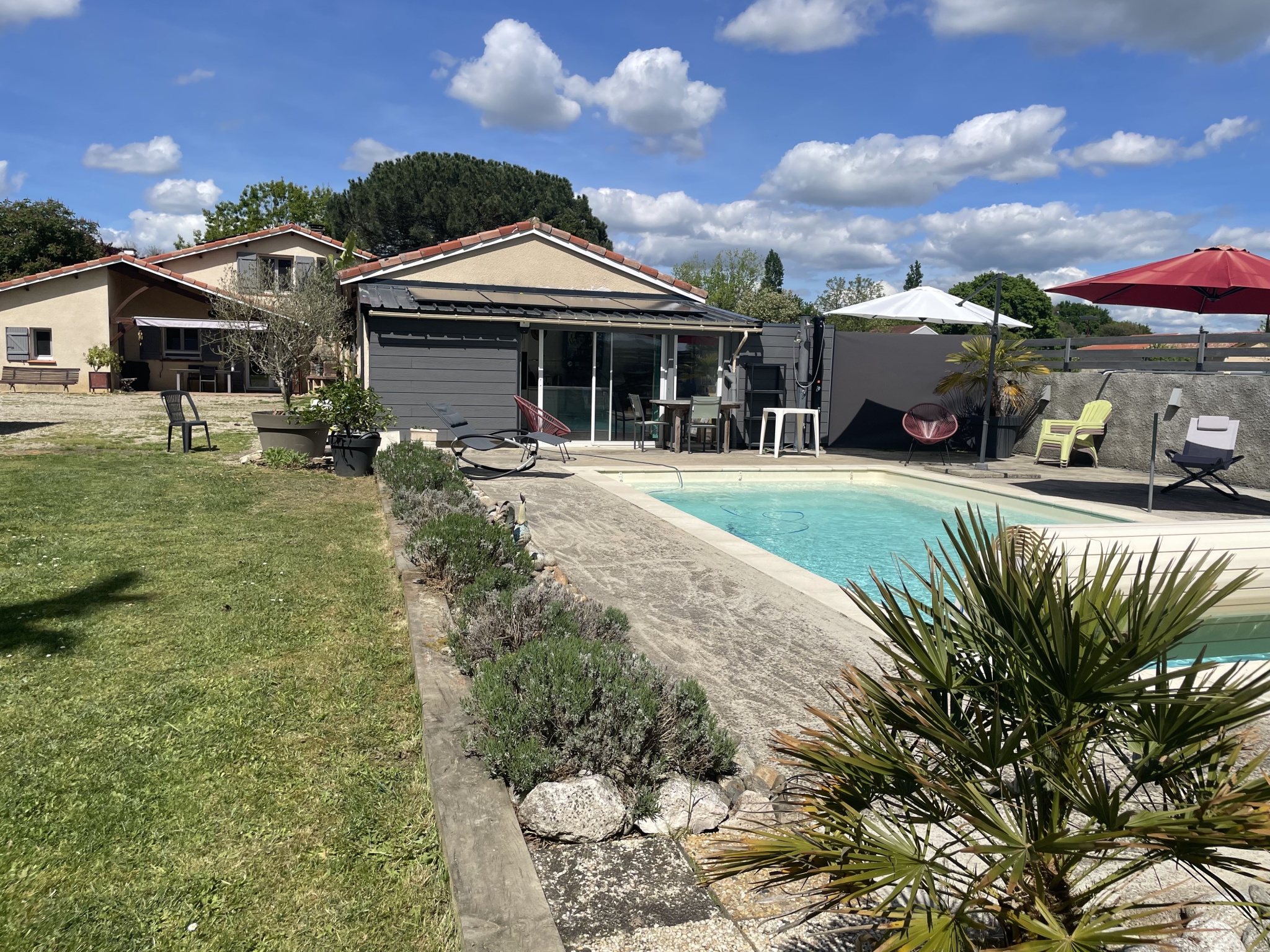 En 2019, une extension moderne a été ajoutée : un appartement T2 aux normes PMR indépendant d’environ 46 m², fonctionnel, climatisé et idéal pour accueillir famille, amis ou pour de la location.