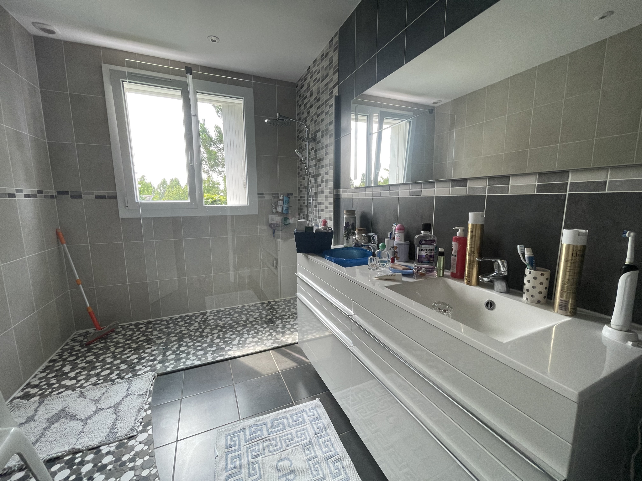 Une salle d’eau entièrement rénovée, équipée d’une douche à l’italienne