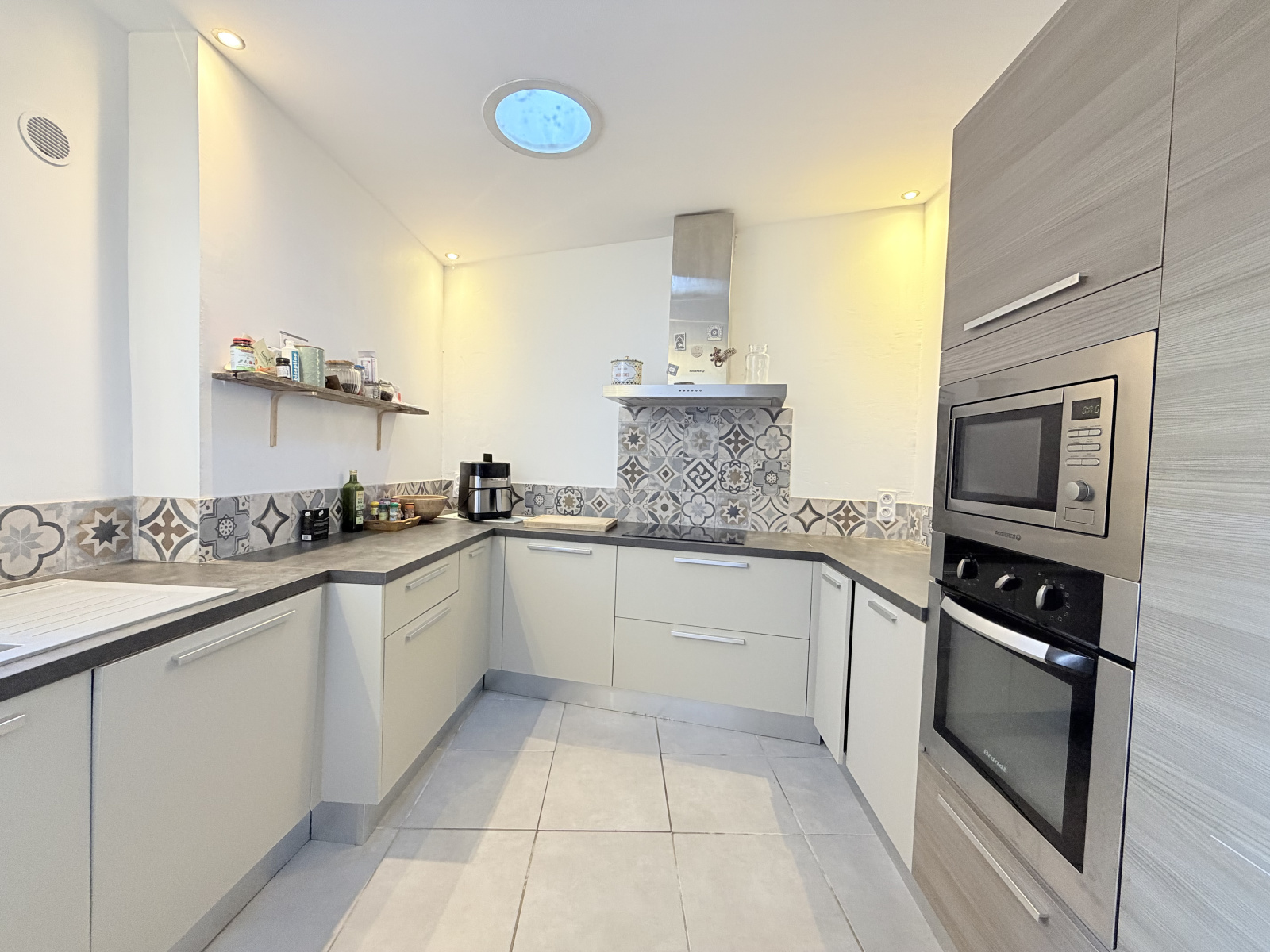 D’une surface bien agencée, elle se compose d’un salon lumineux ouvert sur une cuisine attenante entièrement équipée, offrant un espace convivial idéal pour les repas en famille ou entre amis.