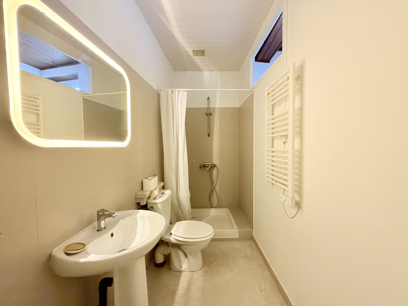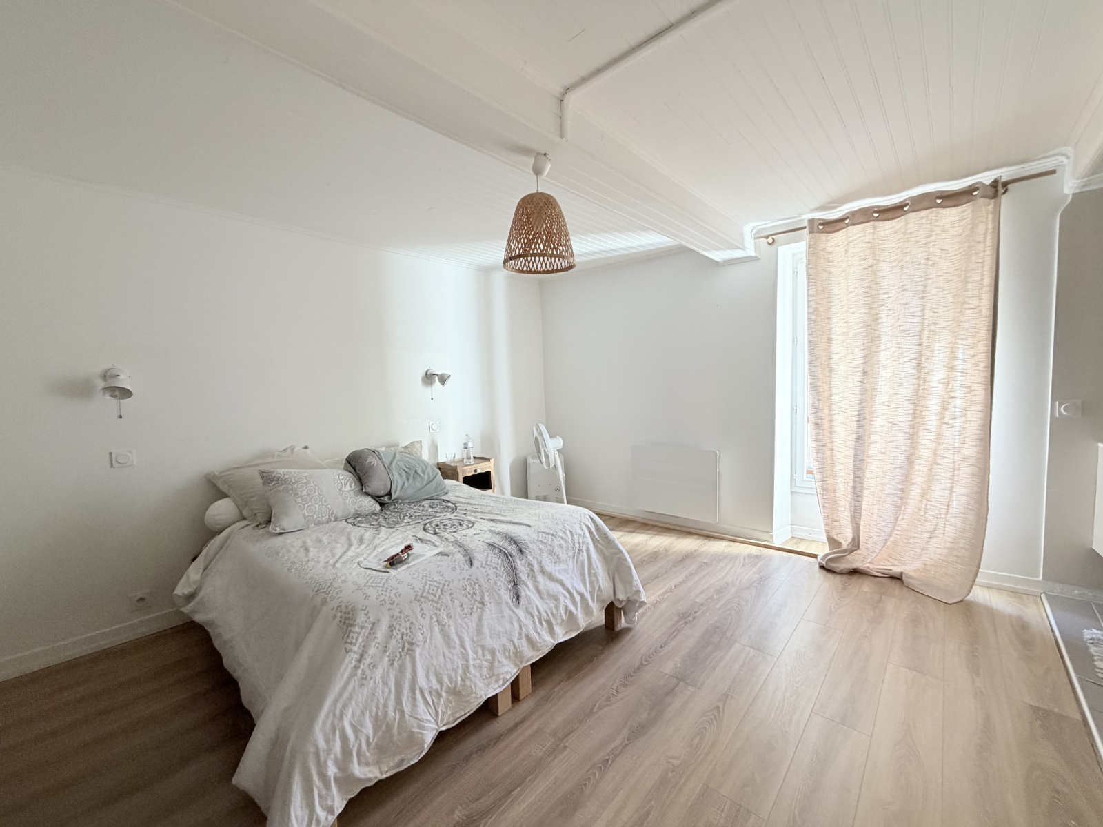 La partie nuit se compose de deux chambres spacieuses, dont une suite parentale avec salle d’eau privative.