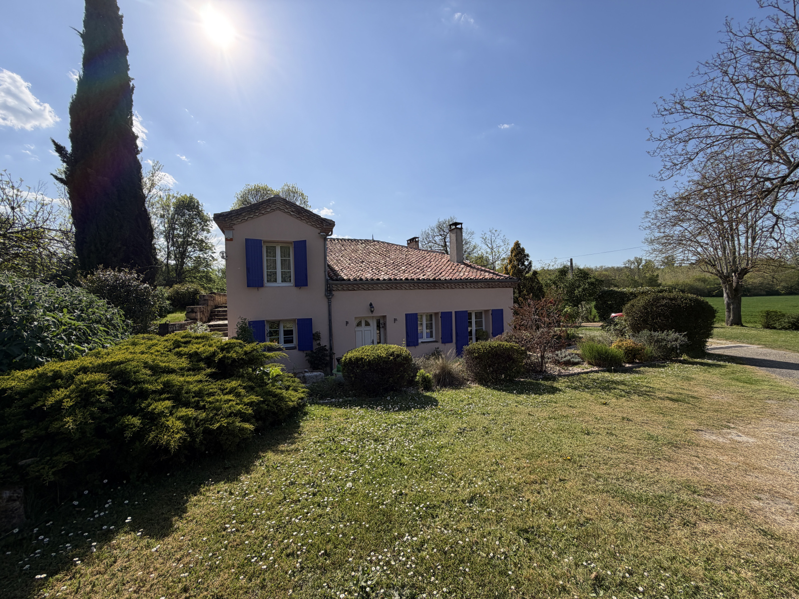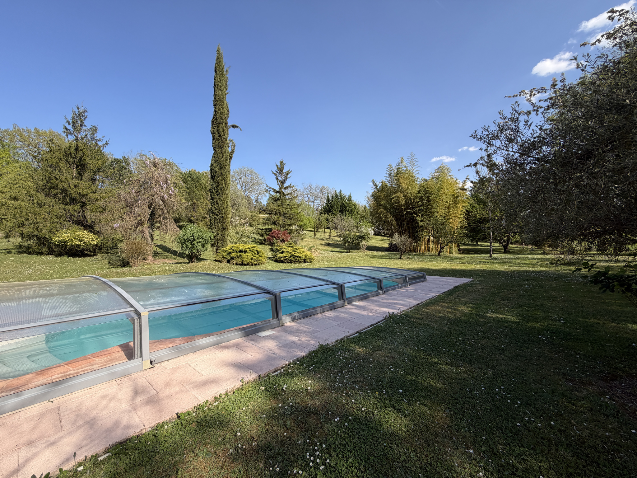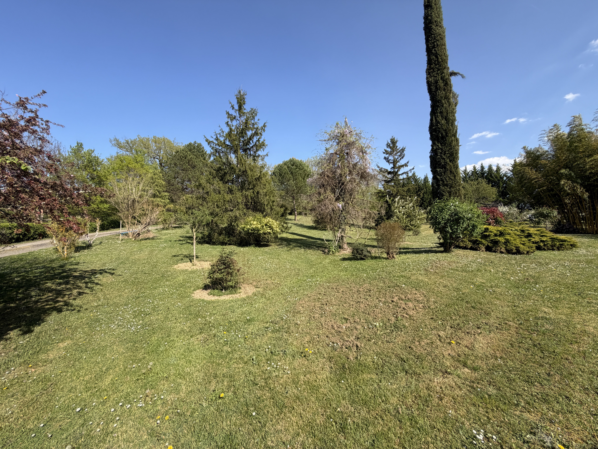 Implanté sur un terrain paysager de plus de 7 700 m², soigneusement entretenu et agrémenté de magnifiques arbres ainsi que d'une piscine traditionnelle.