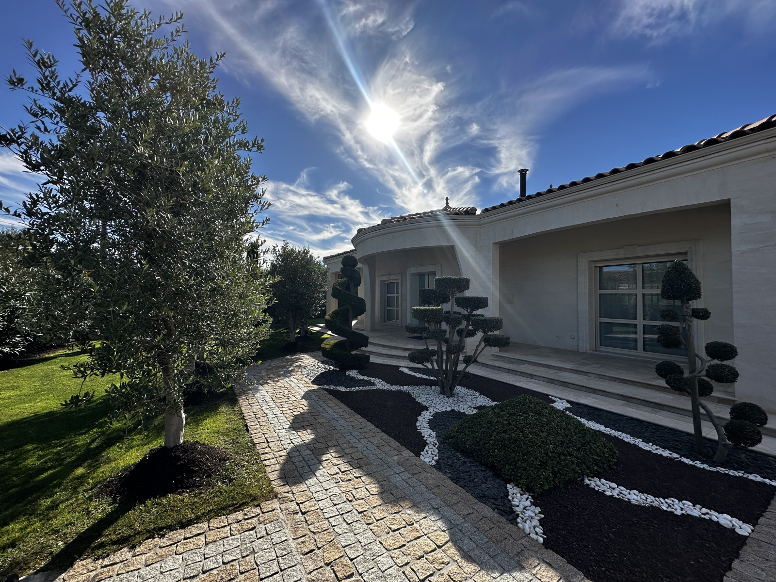 À l’extérieur, le parc entièrement paysagé révèle un soin et une harmonie rares : chaque détail a été pensé pour offrir un cadre de vie apaisant et élégant.