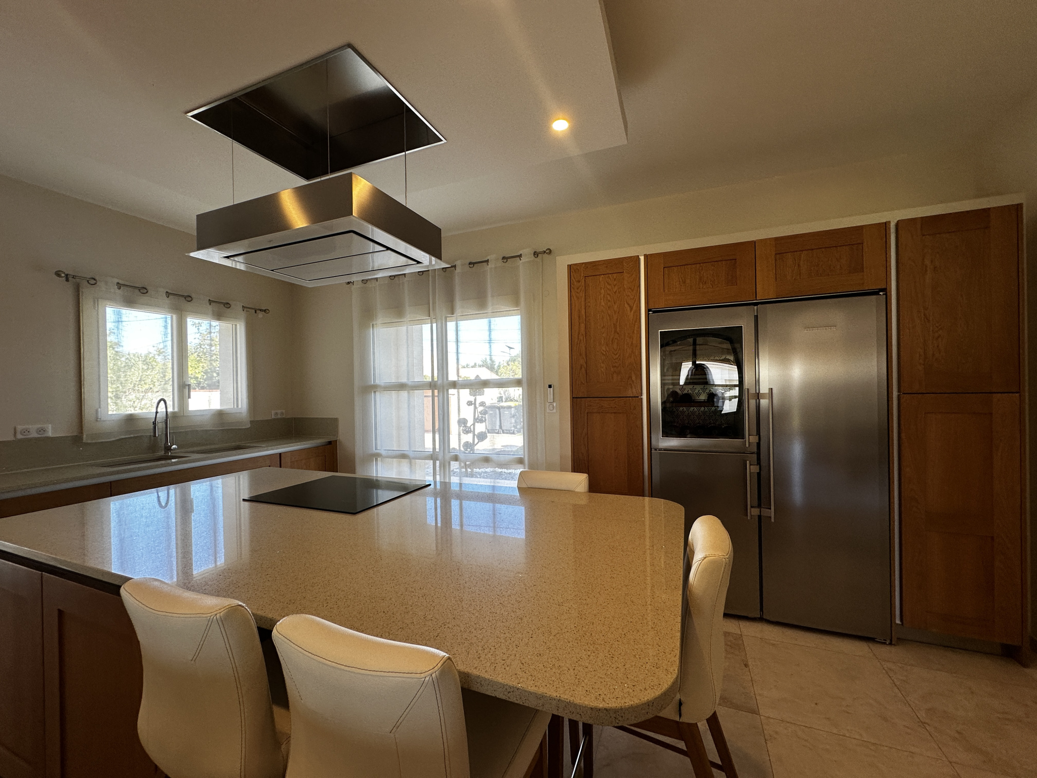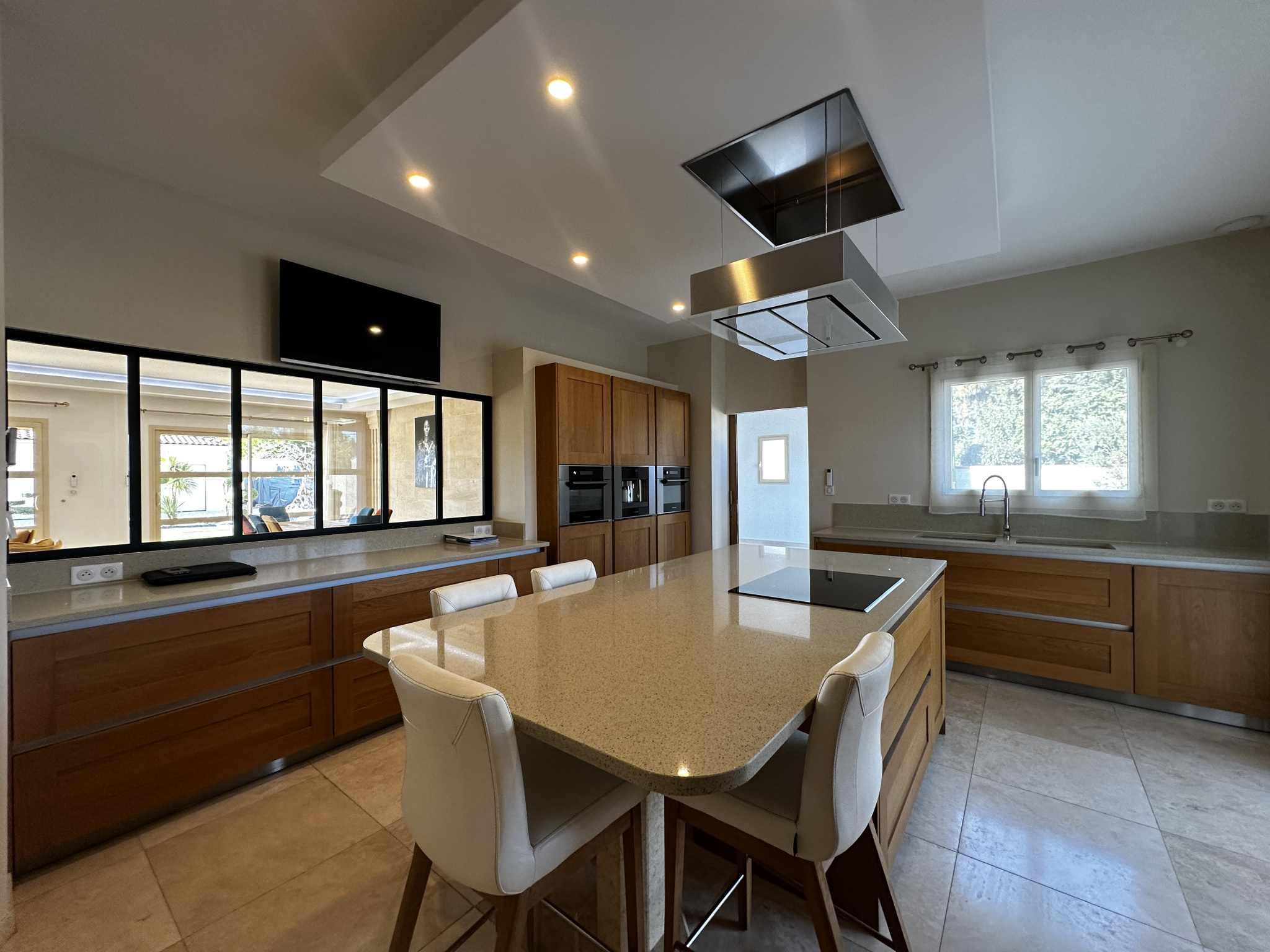 Le vaste séjour, baigné de lumière grâce à une verrière contemporaine, s’ouvre sur une cuisine élégante et parfaitement équipée, pensée pour la convivialité et le confort. Une pièce attenante complète cet espace et pourra être aménagée selon vos envies : bureau, salle de jeux, salon TV ou bibliothèque.
