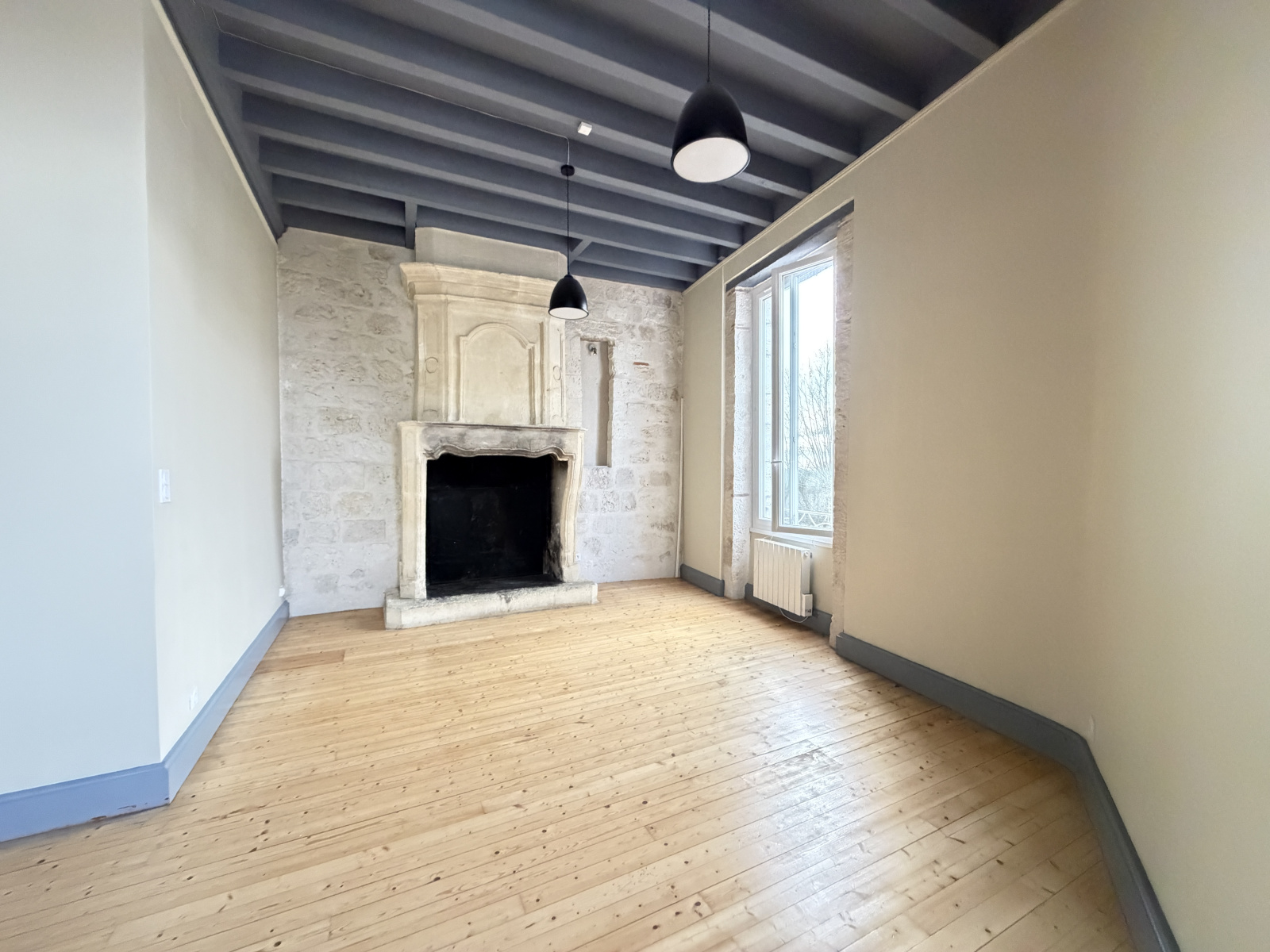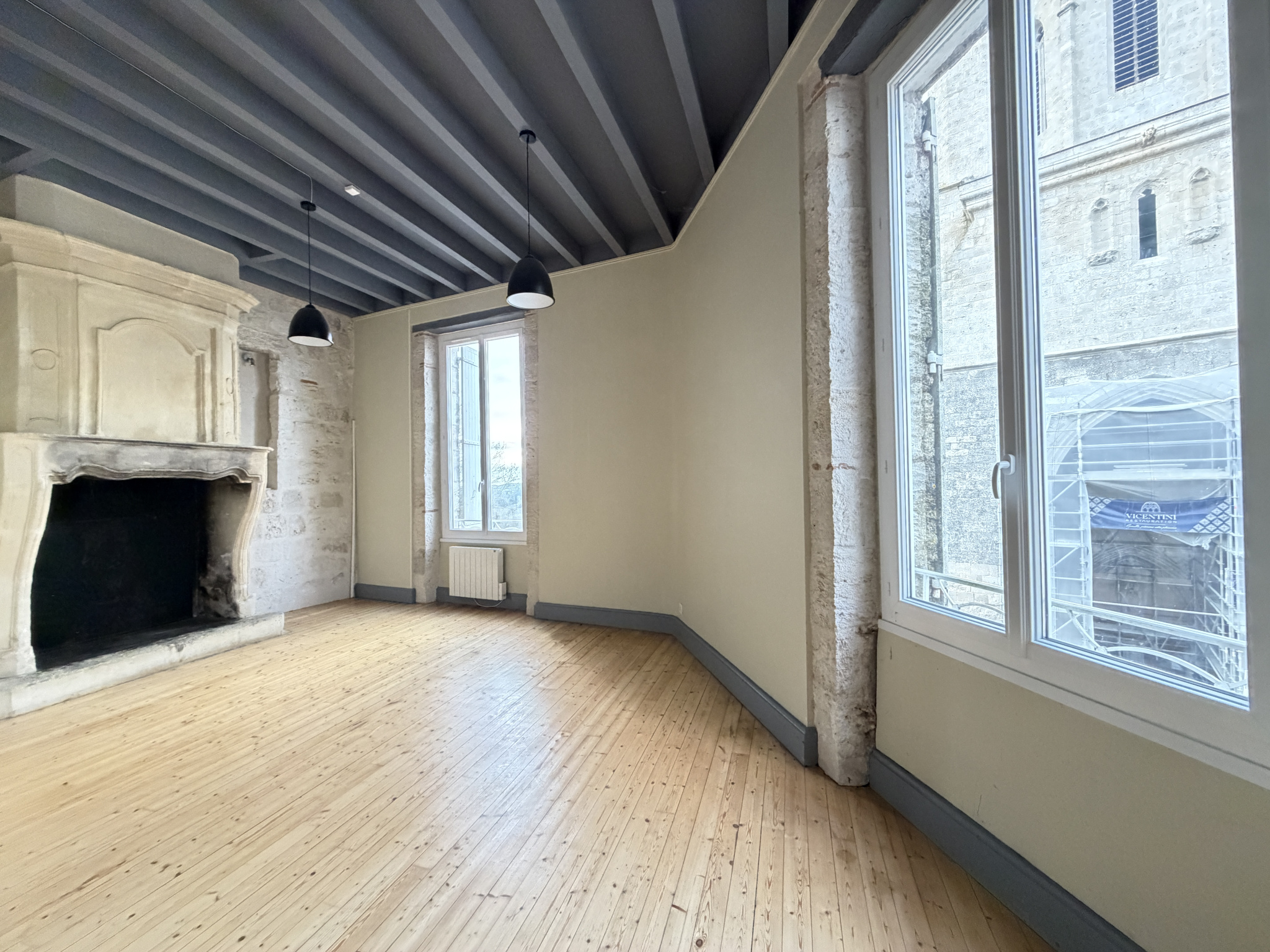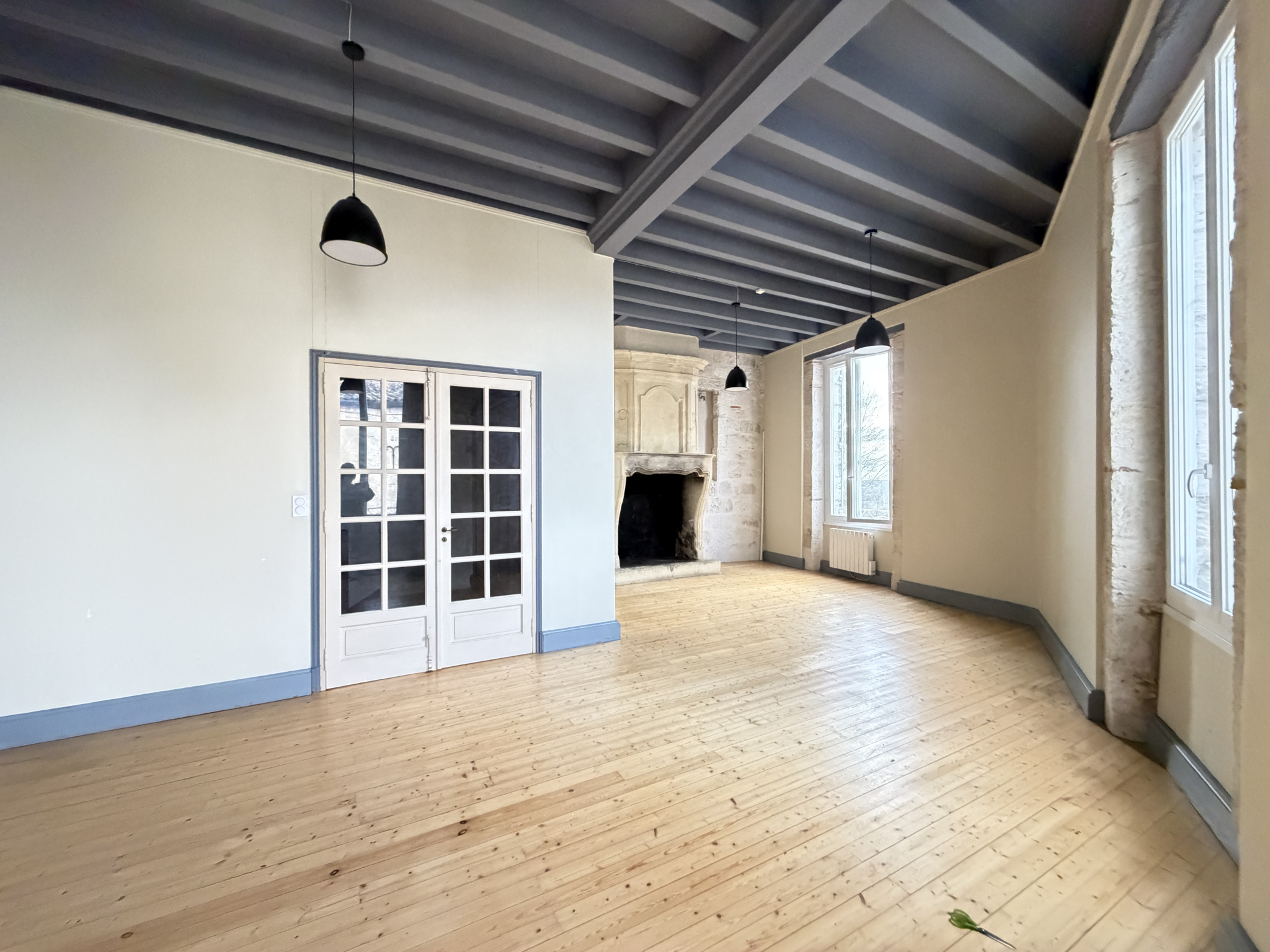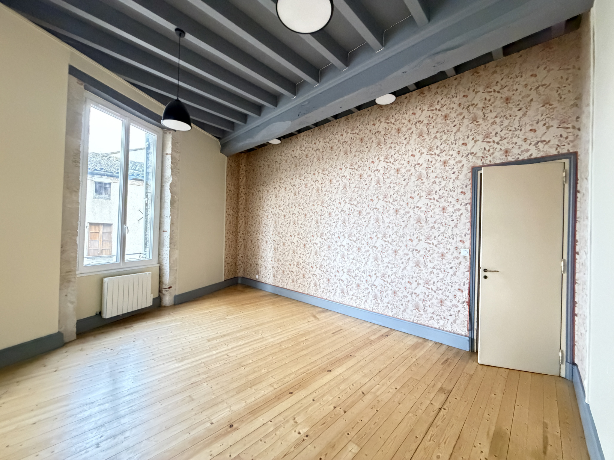 À l’étage, un appartement en duplex de type F4 séduit par ses volumes généreux et son ambiance chaleureuse :