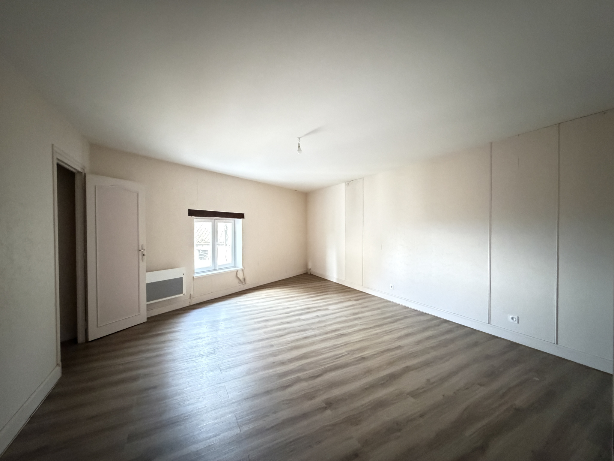 -Trois grandes chambres, dont une avec point d’eau, Salle de bain, WC.