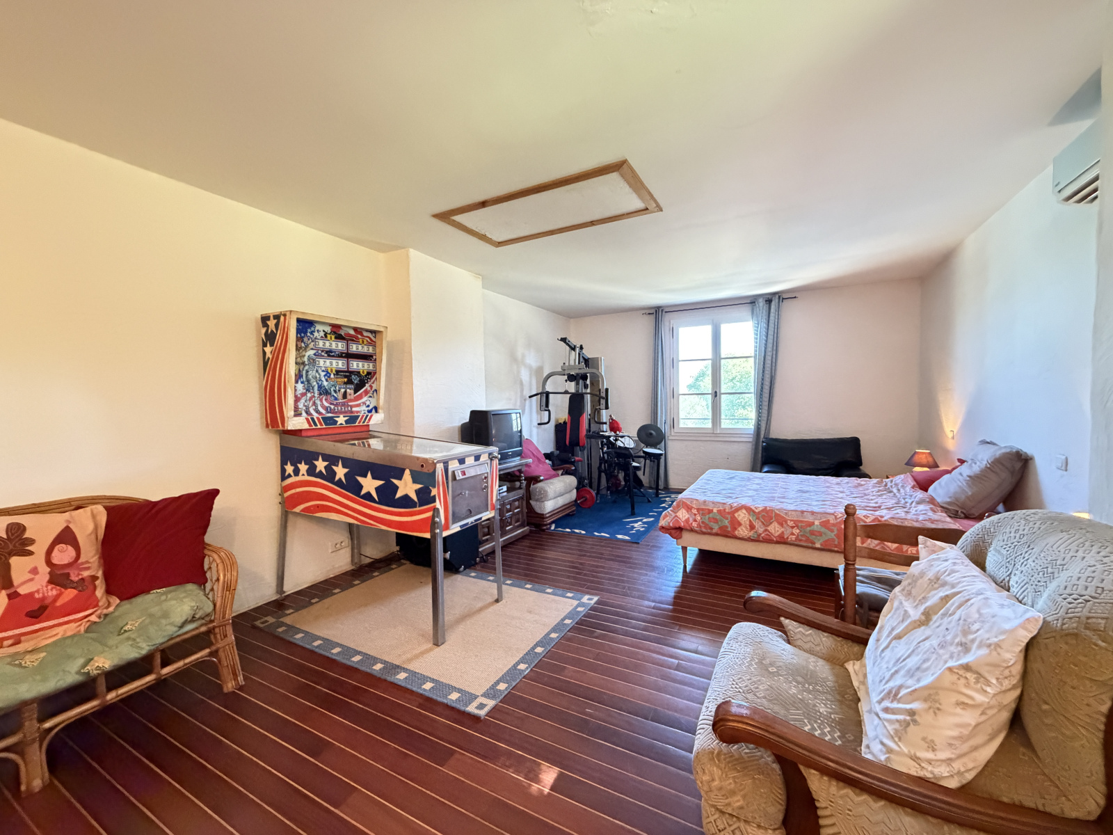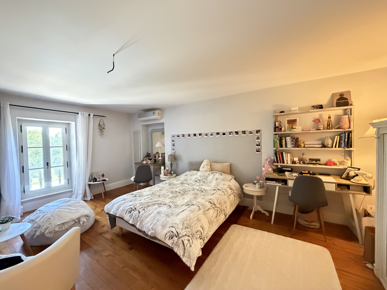 À l’étage, l’espace nuit s’organise autour d’un palier desservant quatre chambres climatisées, chacune disposant de sa salle de bain et bénéficiant d’une vue imprenable sur le parc. Un WC indépendant vient parfaire cet étage.