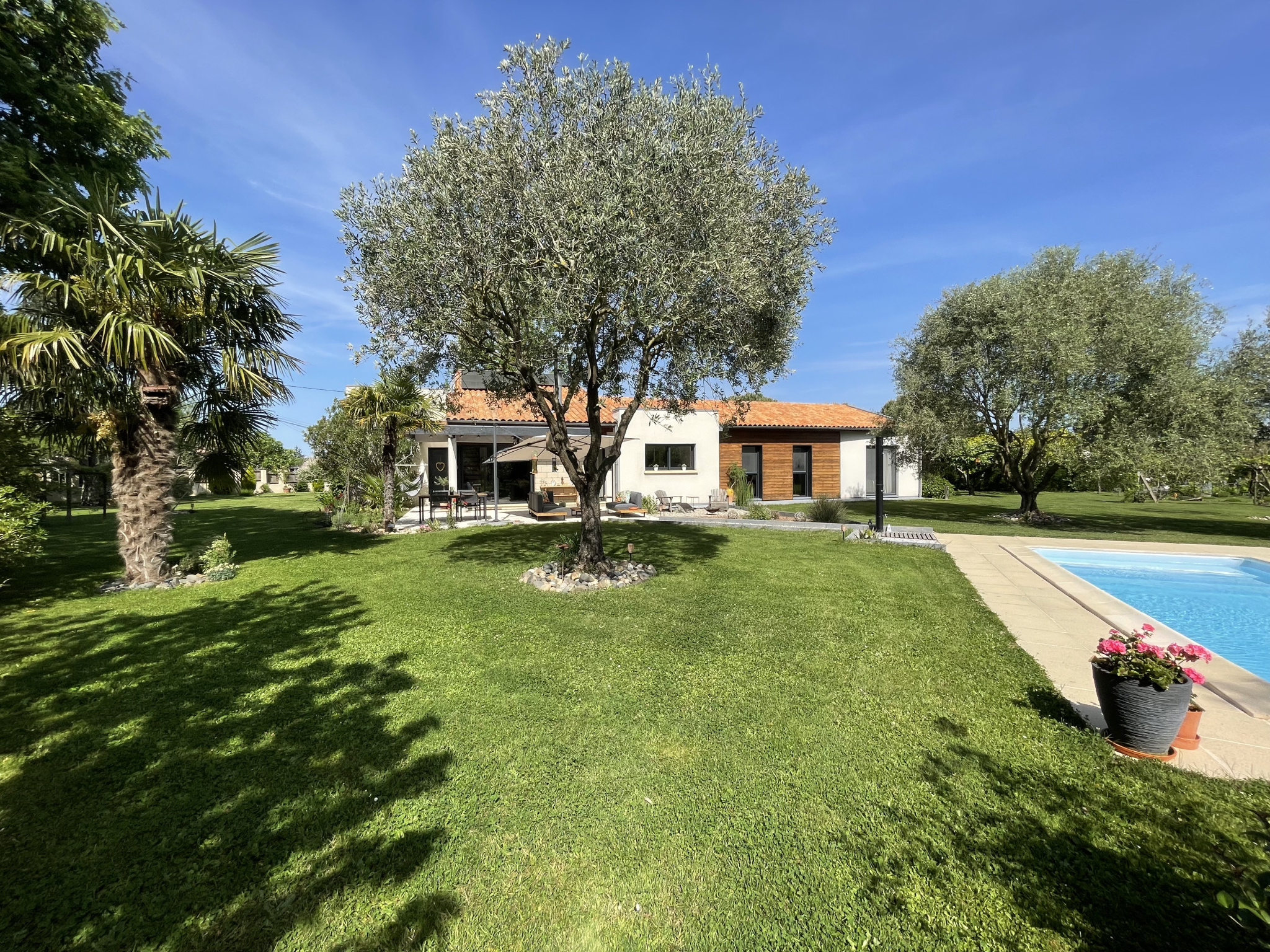 Dès l’entrée, vous serez séduit par des volumes généreux et une luminosité omniprésente. La maison propose un vaste espace de vie comprenant un salon-salle à manger baigné de lumière, une cuisine à la fois fonctionnelle et raffinée, ainsi que quatre chambres sur deux espaces distincts ainsi qu'un bureau et une cave offrant de multiples possibilités d’aménagement (espace dégustation, stockage…).