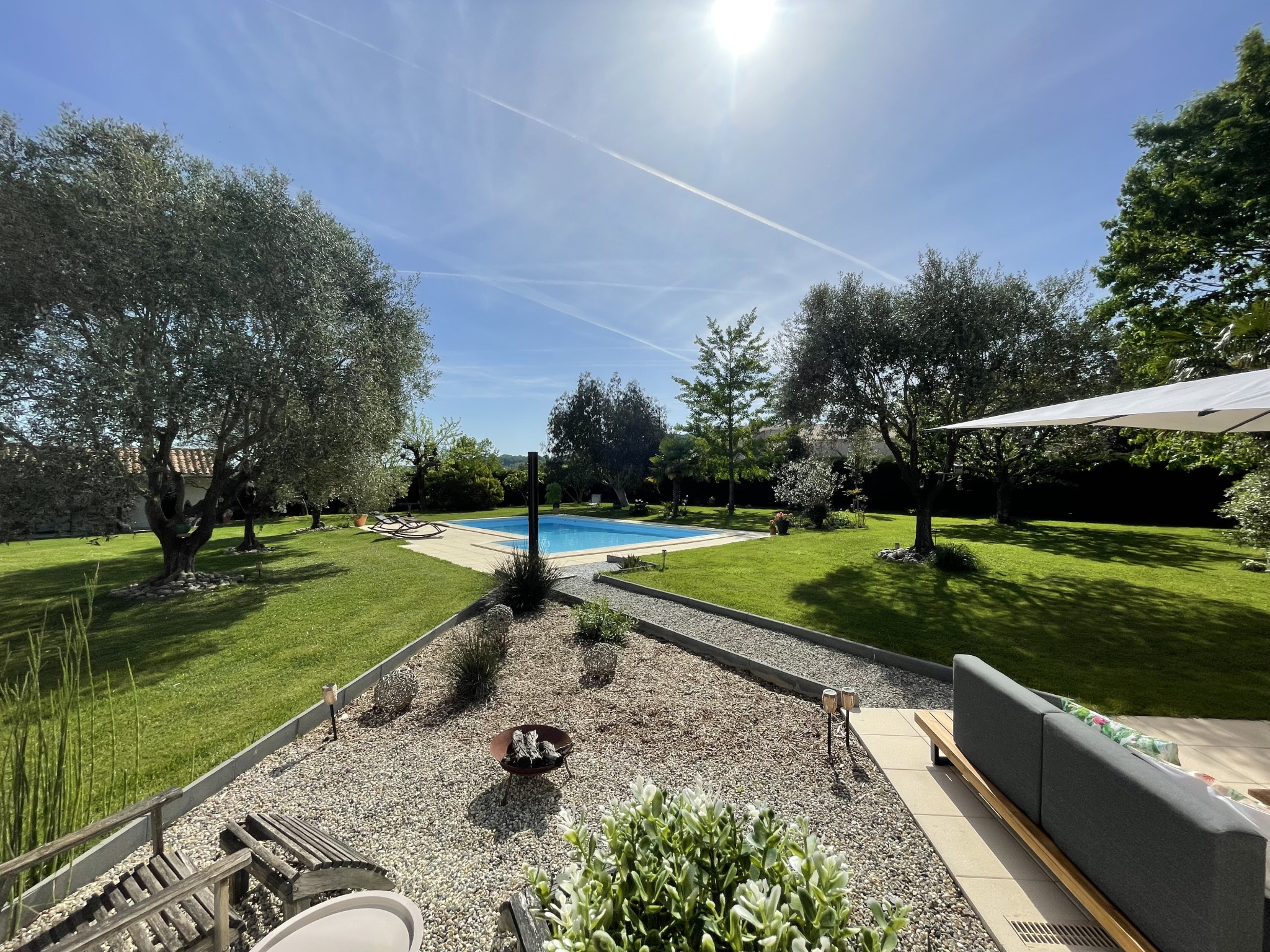 Implantée sur un magnifique parc paysager de plus de 3 200 m², entièrement arboré et soigneusement entretenu, cette propriété offre un cadre de vie intime et apaisant, à l’abri des regards.